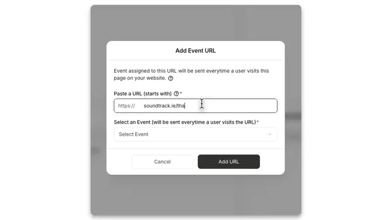 Choose a page and select an event to trigger when a user visits that page (like "Contact")